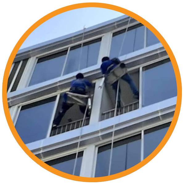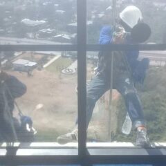 บริการทำความสะอาดกระจก ผนังภายในและภายนอกอาคารที่สูง (งานโรยตัว)
